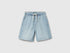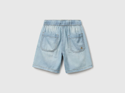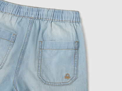 Shorts in chambray cotton denim look fabric. Stretch waist with drawstring. Rounded pockets on the front and patch pockets on the back, one of which has an embroidered logo. Light, comfortable and as versatile as jeans.