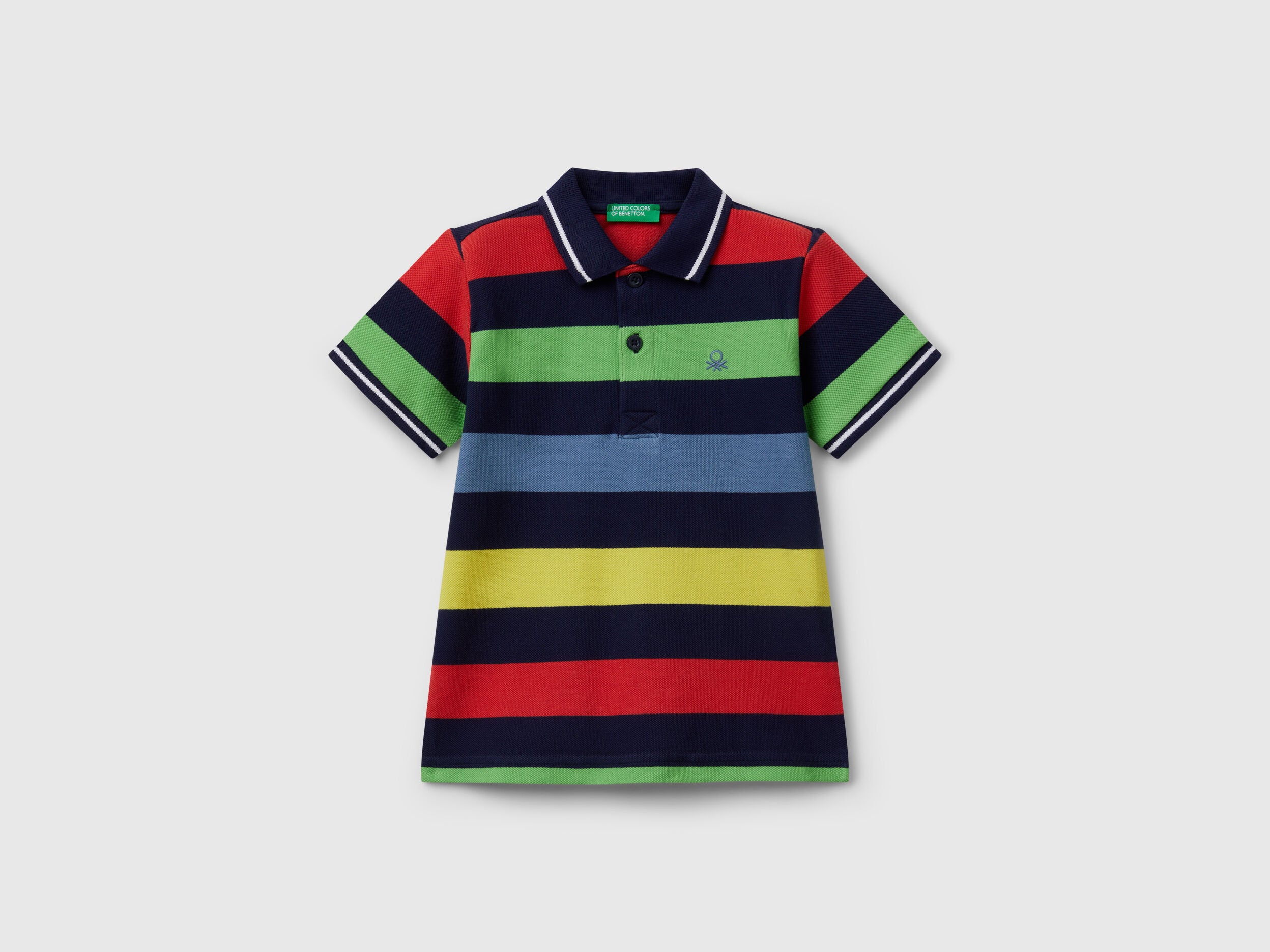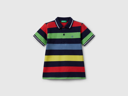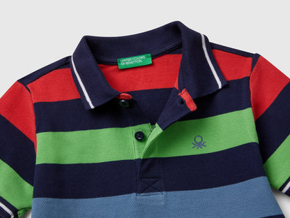 Short-sleeved polo shirt in pure yarn-dyed striped cotton. Classic collar, partial buttoning on the front and embroidered logo on the left chest. A casual style classic that never goes out of fashion.