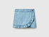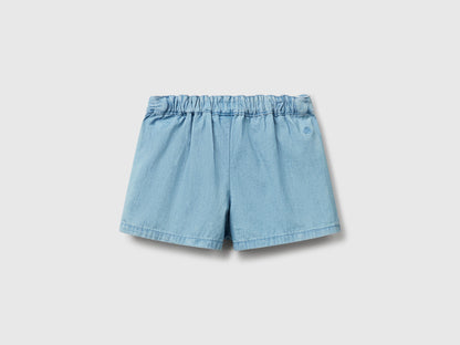 Culottes in pure cotton chambray. Front panel with rouching and snap button. Waist with inner elastic and logo embroidery on back. For classic, refined and feminine outfits.