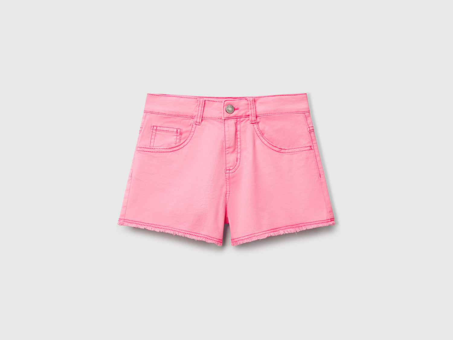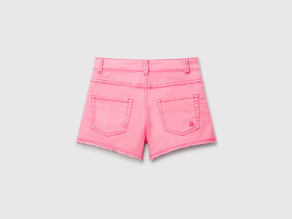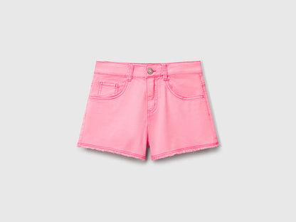 Comfort fit shorts in stretch cotton with frayed bottom. Five pocket design, front opening with zip and button. Internal adjustable elastic waistband. Comfortable and easy to combine.