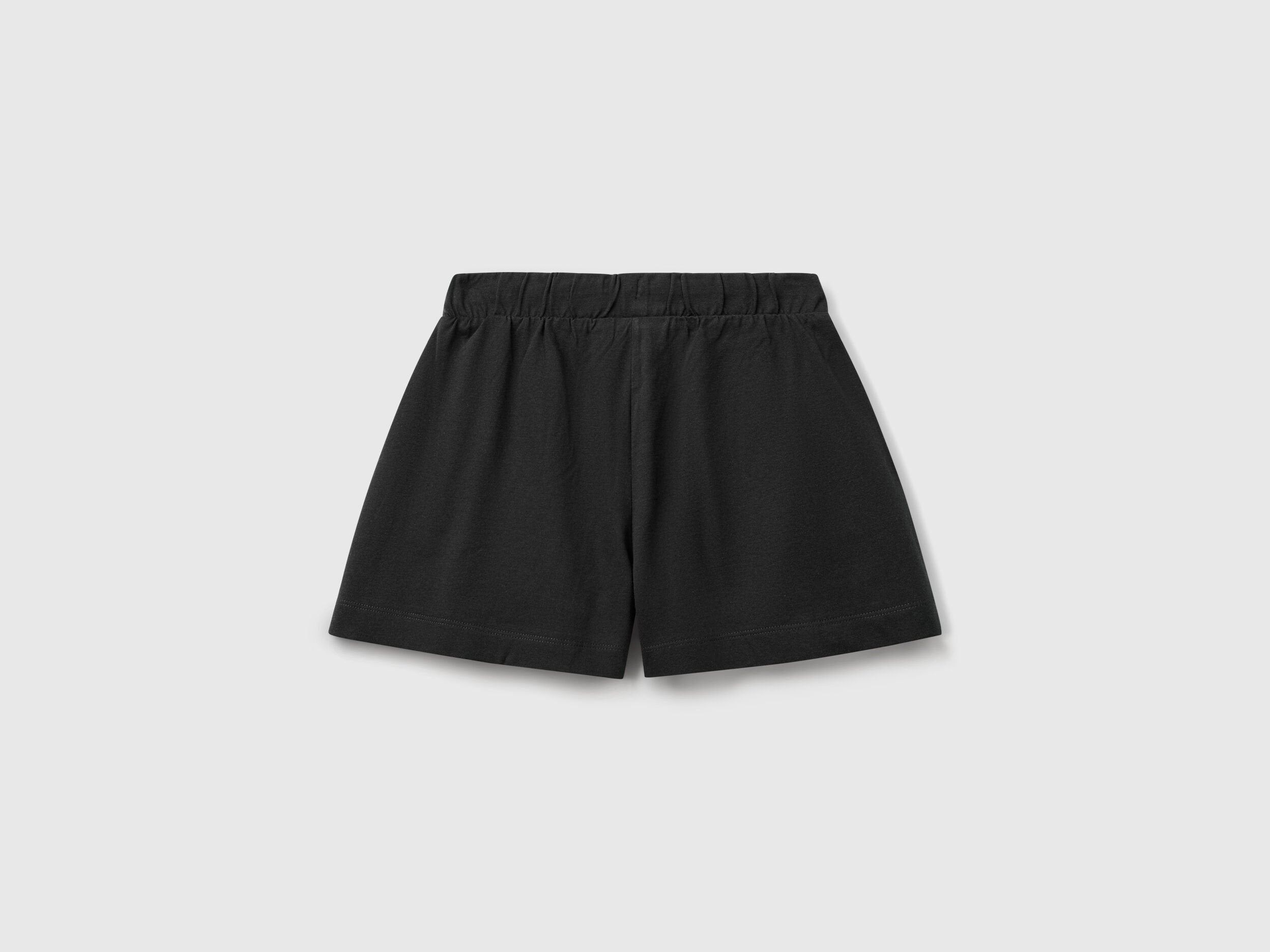 Short trousers in pure cotton with a warm texture. Waist with drawstring, inset pockets at sides with embroidered logo at bottom left. Perfect for everyday outfits.