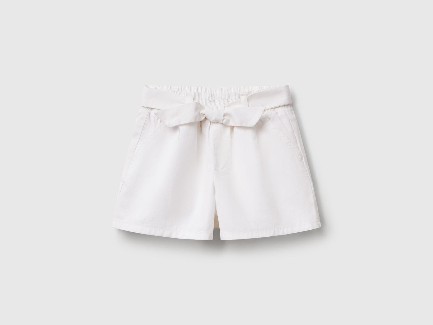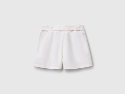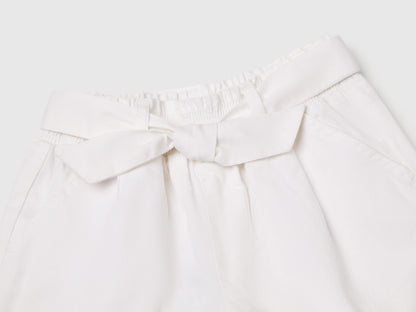 Shorts in soft pure cotton fabric with regular fit. Waist with internal elastic and sash, front pockets and embroidered logo on the back. Casual and feminine, perfect for summertime.
