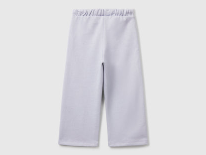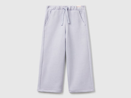 Long trousers in soft pure sweat cotton with wide and loose leg. They can be worn easily with the inner elastic waist and drawstring.