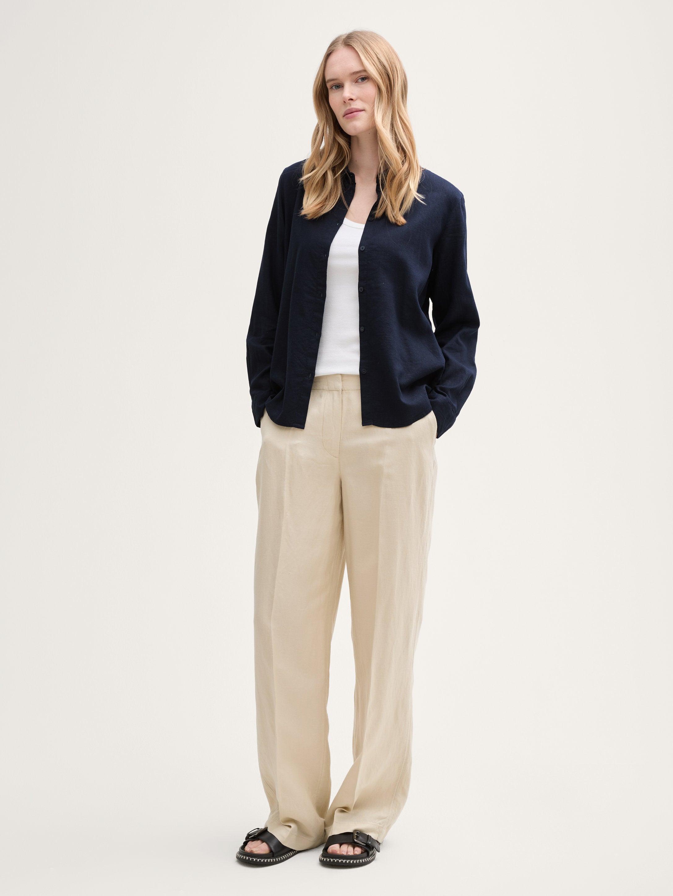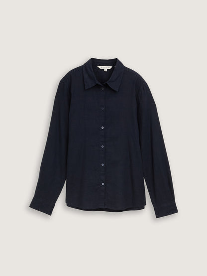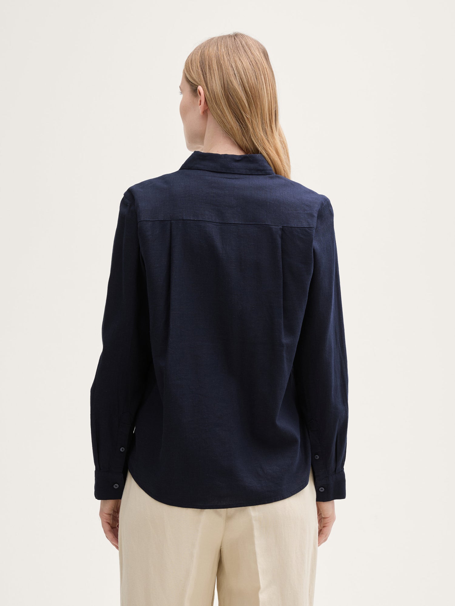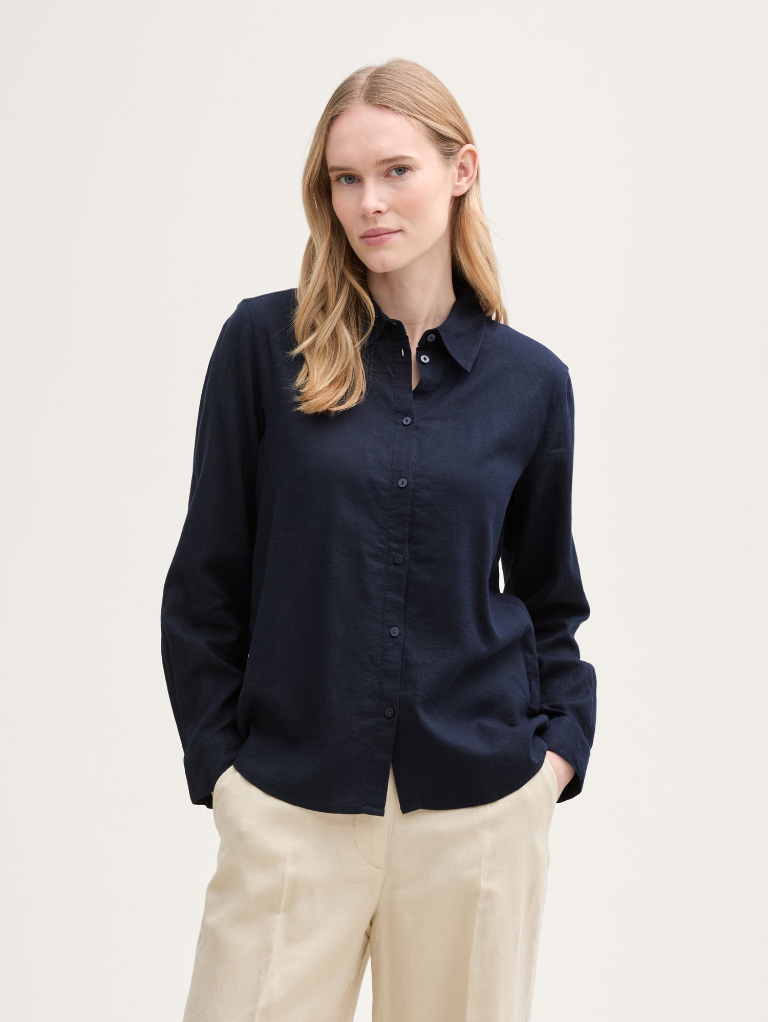 Regular fit shirt blouse with collar and button placket. The linen content is ideal in spring and summer for a light and cooling feel.