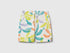 Shorts in pure lightweight cotton sweat with tropical allover print. Waist with inner elastic and clashing drawstring, convenient front patch pockets. Perfect for playing outside.