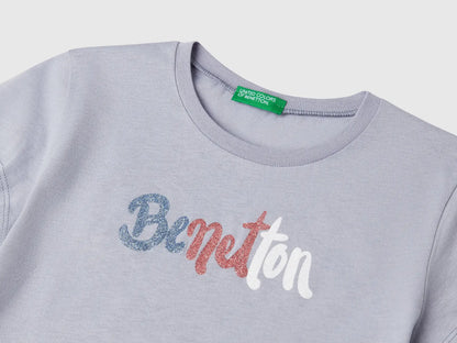 Short sleeve crew neck t-shirt in pure organic cotton with regular fit. A basic piece that's comfy on the skin, enriched by a multicolor glittery logo print on the front. Item made with material containing at least 95% organic cotton.