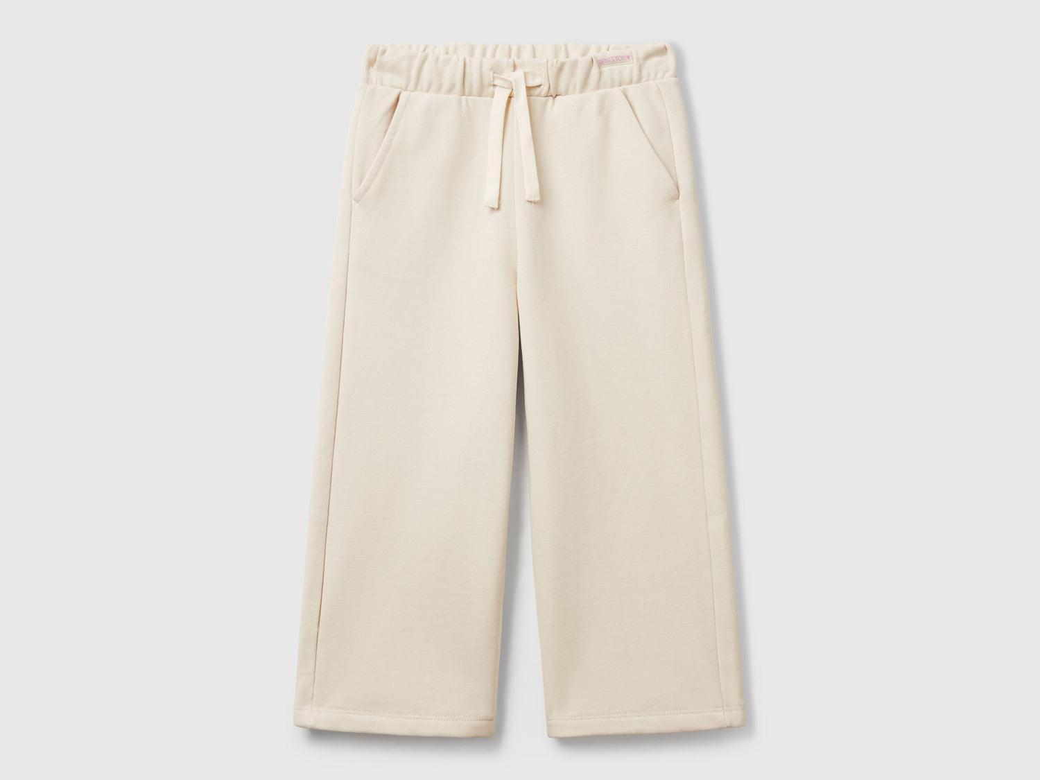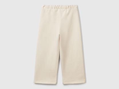 Long trousers in soft pure sweat cotton with wide leg. They can be worn easily with the inner elastic waist and drawstring.
