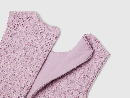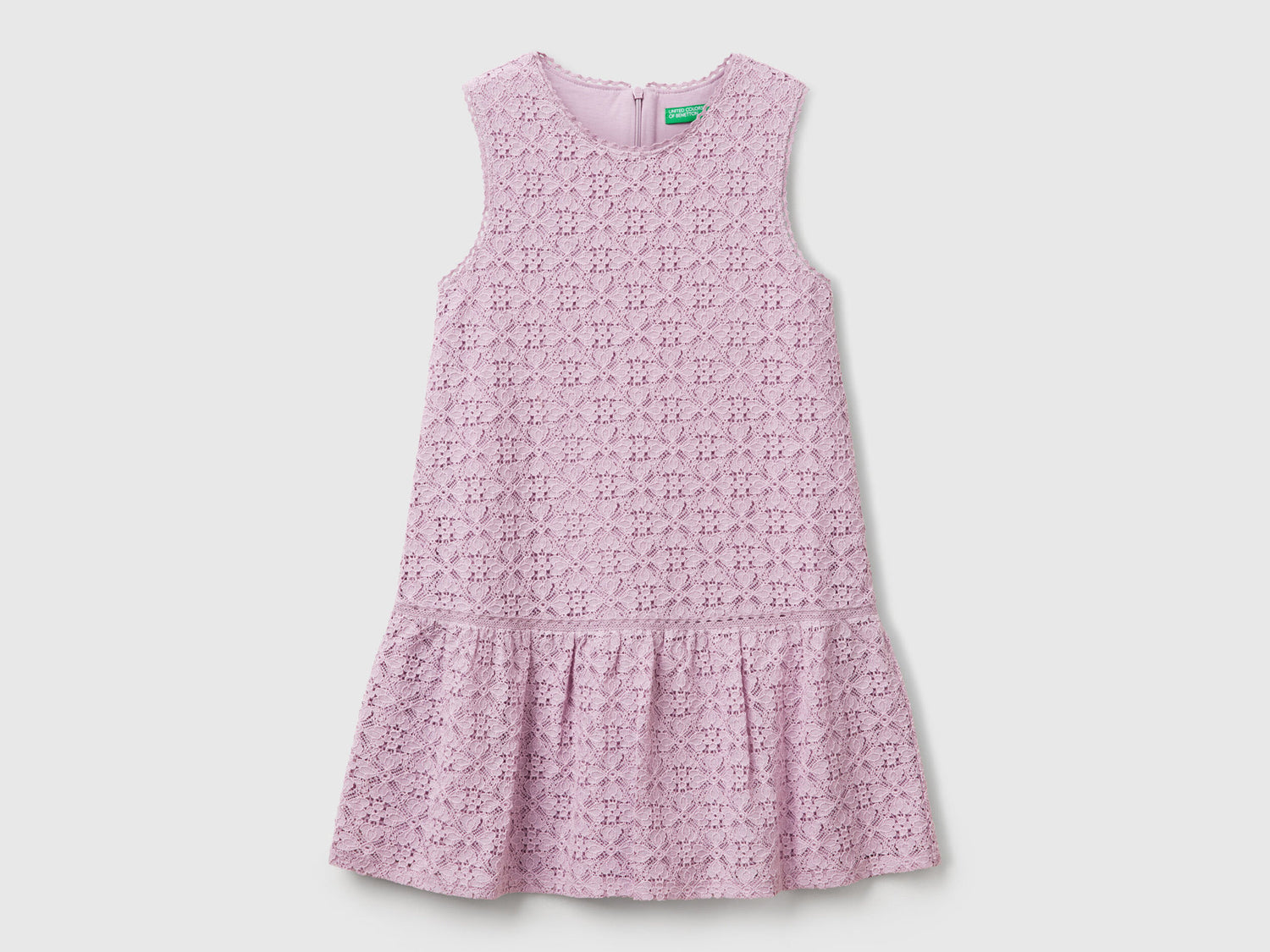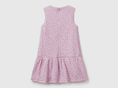 Sleeveless dress in soft viscose and cotton blend lace, lined in pure cotton. Crochet detail on the round neck , armhole and edge of the flounce. Practical zip opening on the back. For feminine and refined looks.