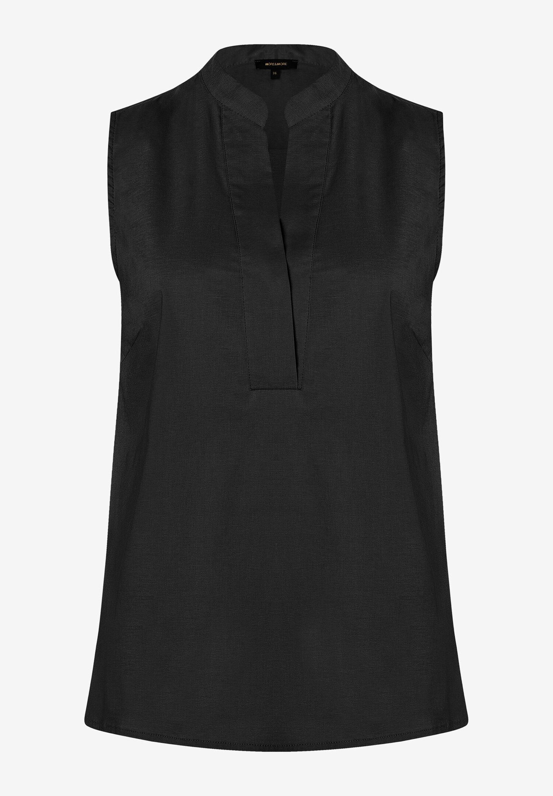 The summery cotton/stretch blouse by MORE & MORE with a sophisticated neckline and small stand-up collar is an absolute all-rounder and can be combined equally well with a skirt, trousers or shorts
