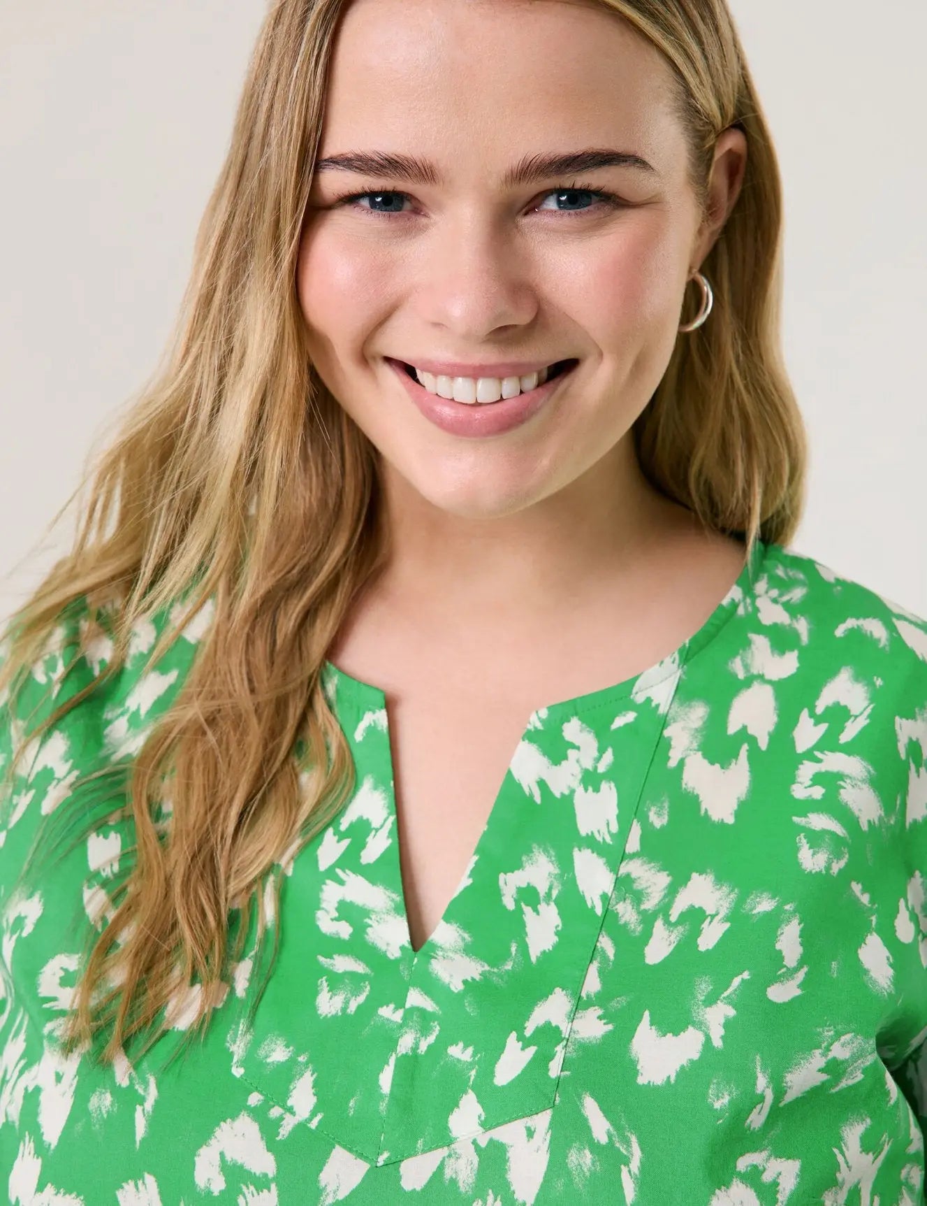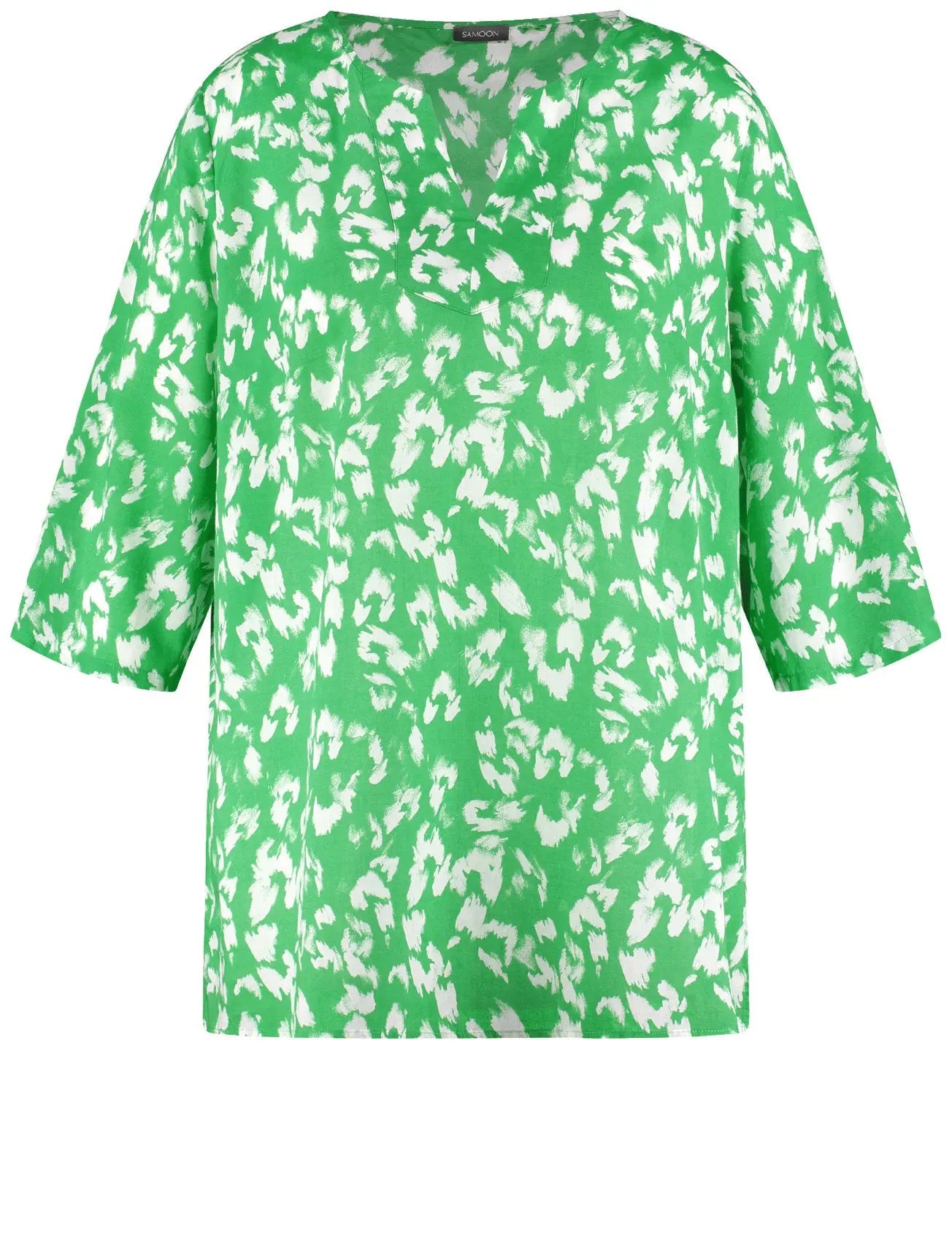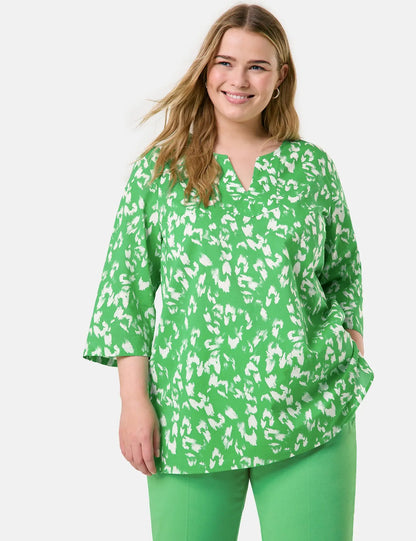 Searching for a summer look? Found it! With its two-tone all-over print, this breezy cotton voile tunic will add a splash of colour to your outfit. The loose cut, 3/4-length sleeves and side hem slits make it the perfect choice for warm days. Whether you wear it casually with jeans or as a cover-up on the beach, a stylish look is guaranteed!