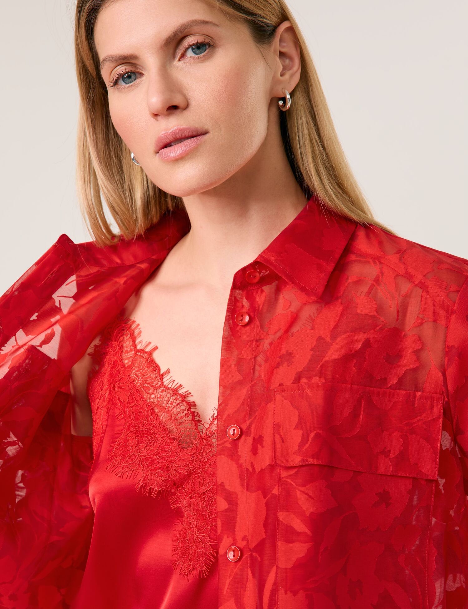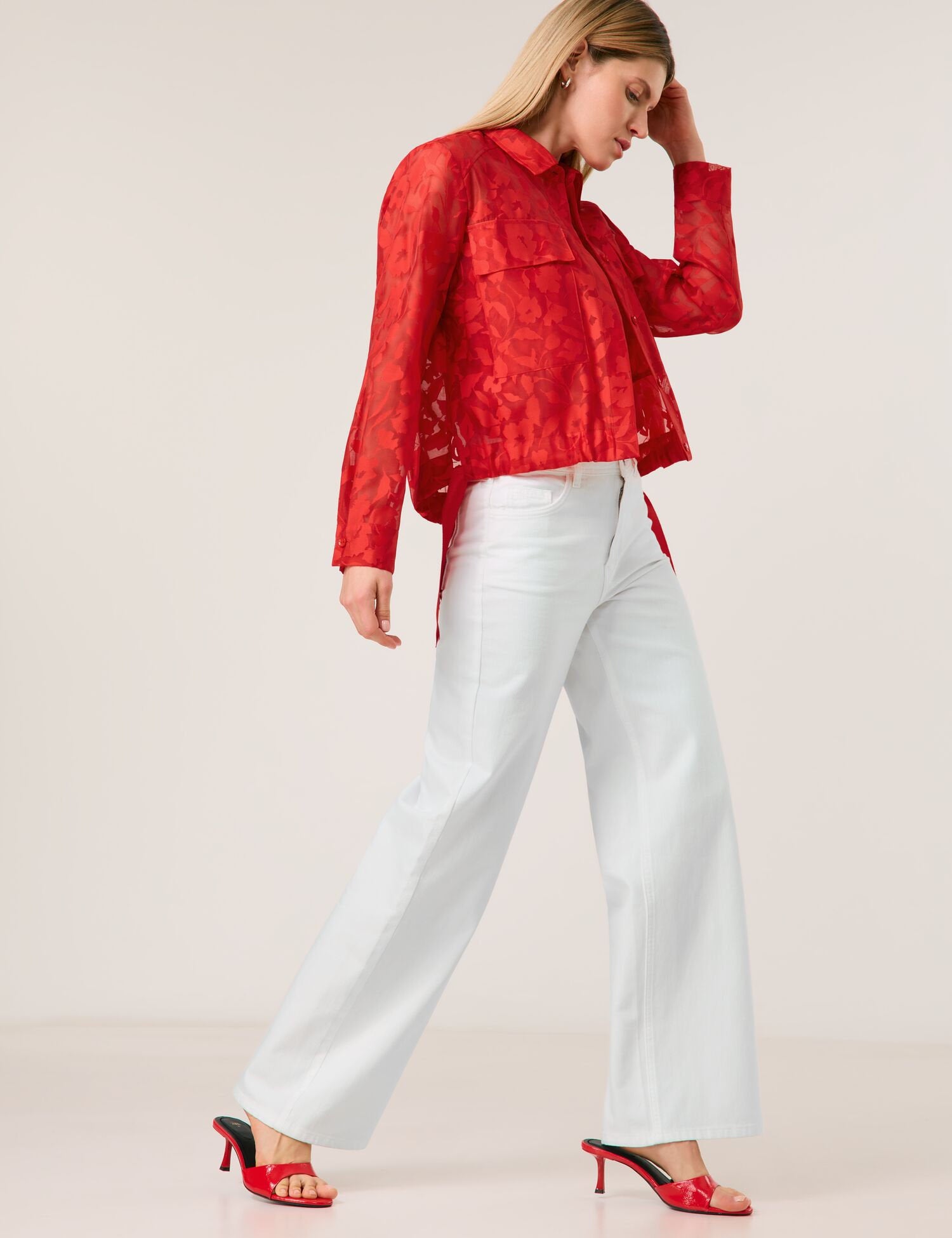 Transparent Blouse Jacket with Floral Pattern