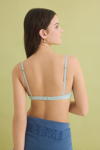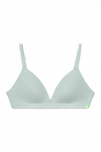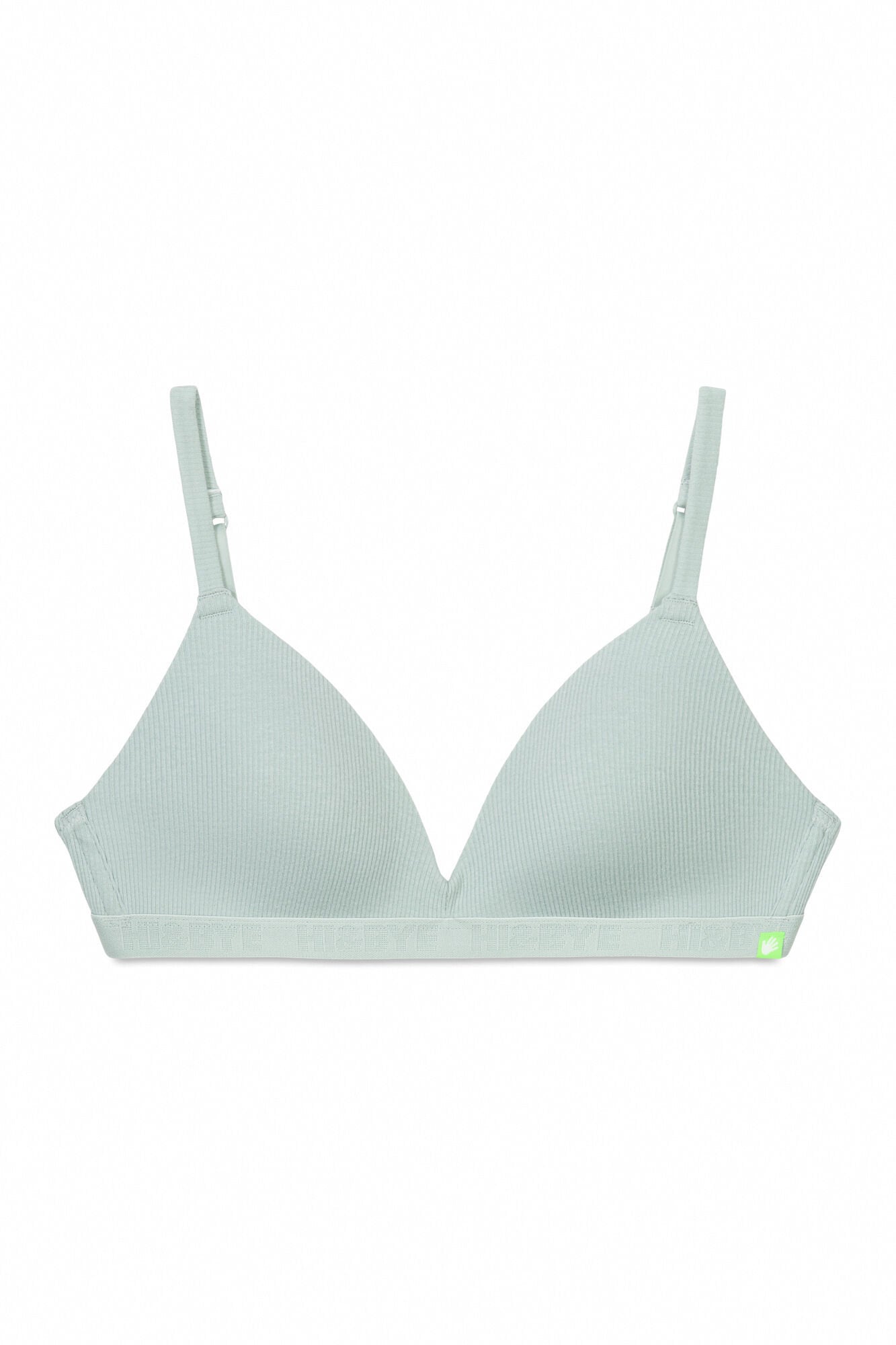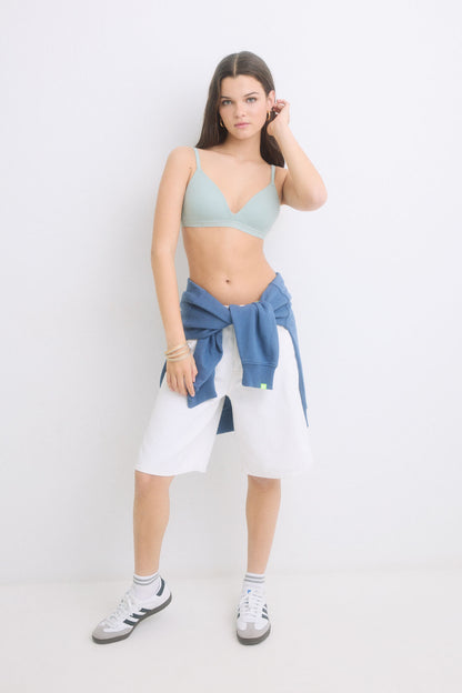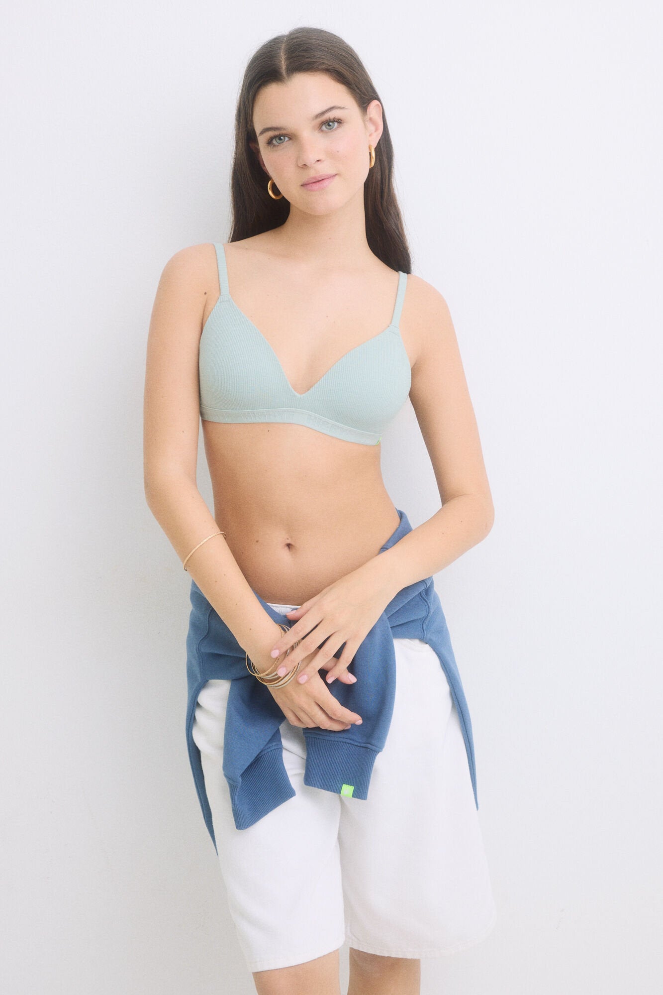 Triangle bra with fixed foam. Made of cotton with a ribbed structure. Elastic band hem the bust with Jacquard effect brand logo.