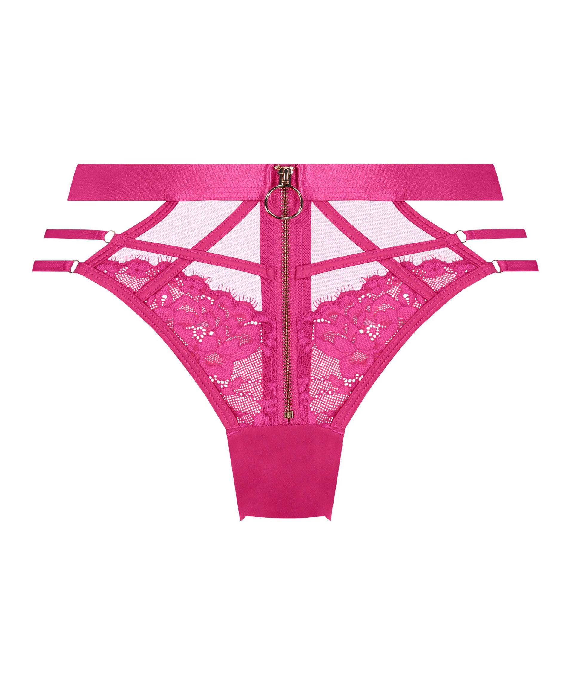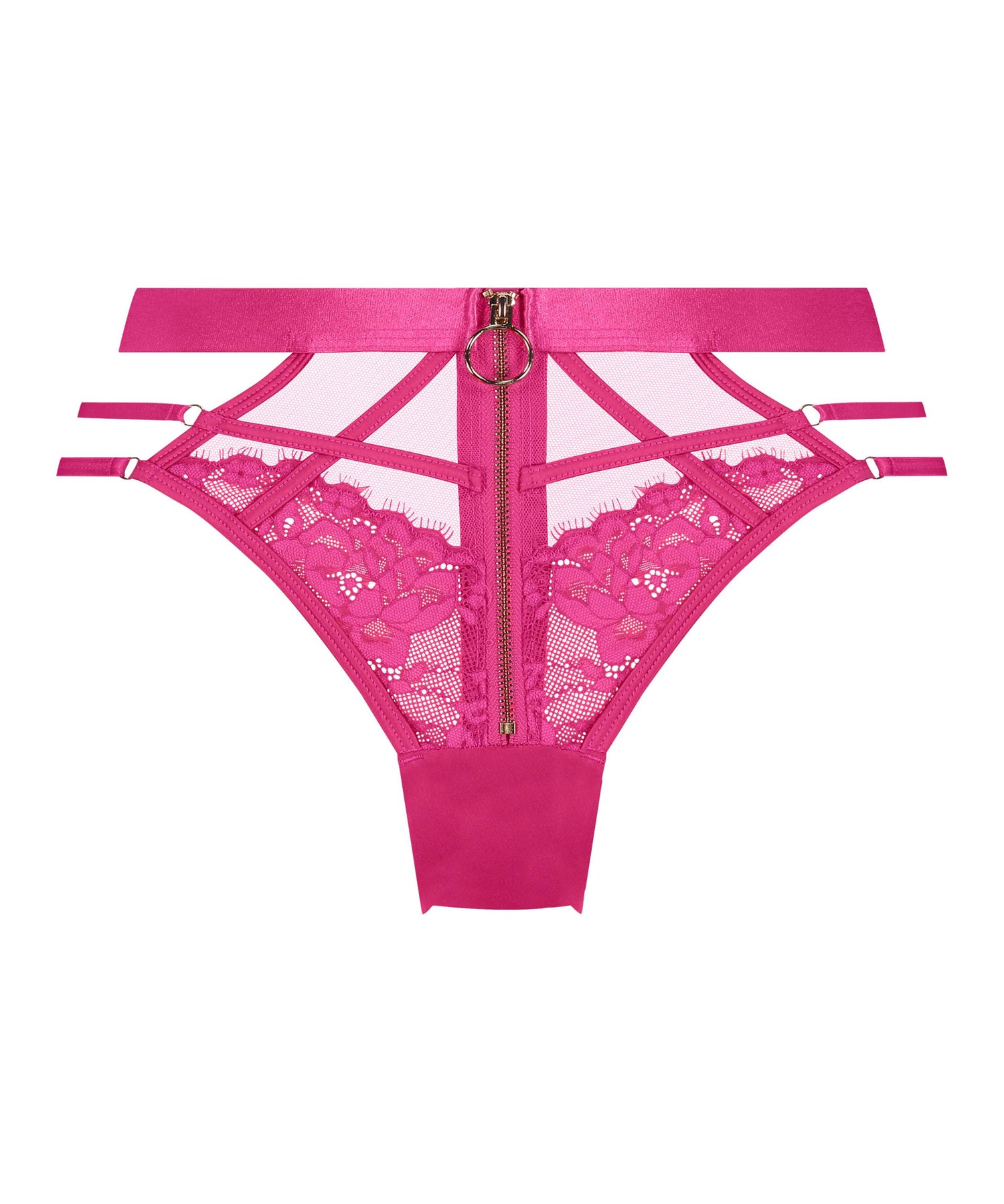 Complete your set with this sexy brazilian knickers. This brazilian knickers features a zip and lace for a very sexy effect. From our Private collection.