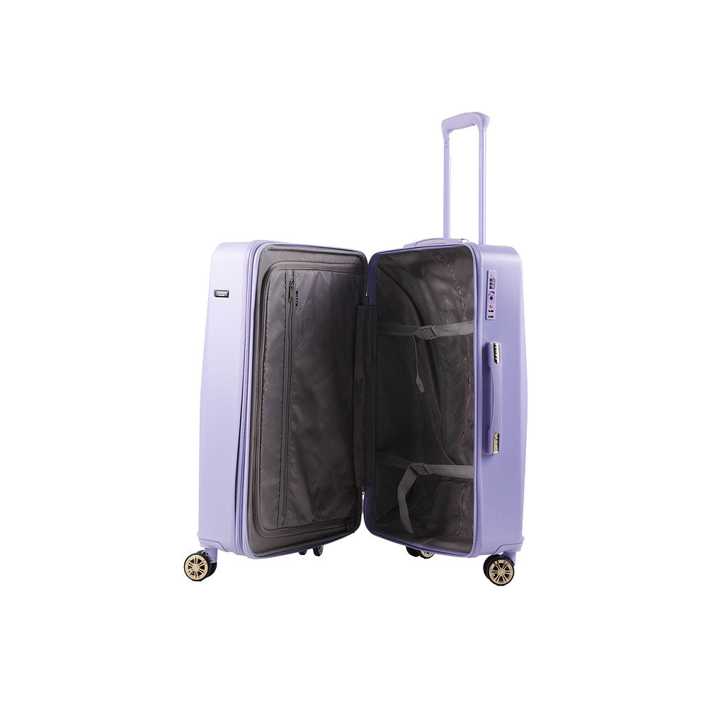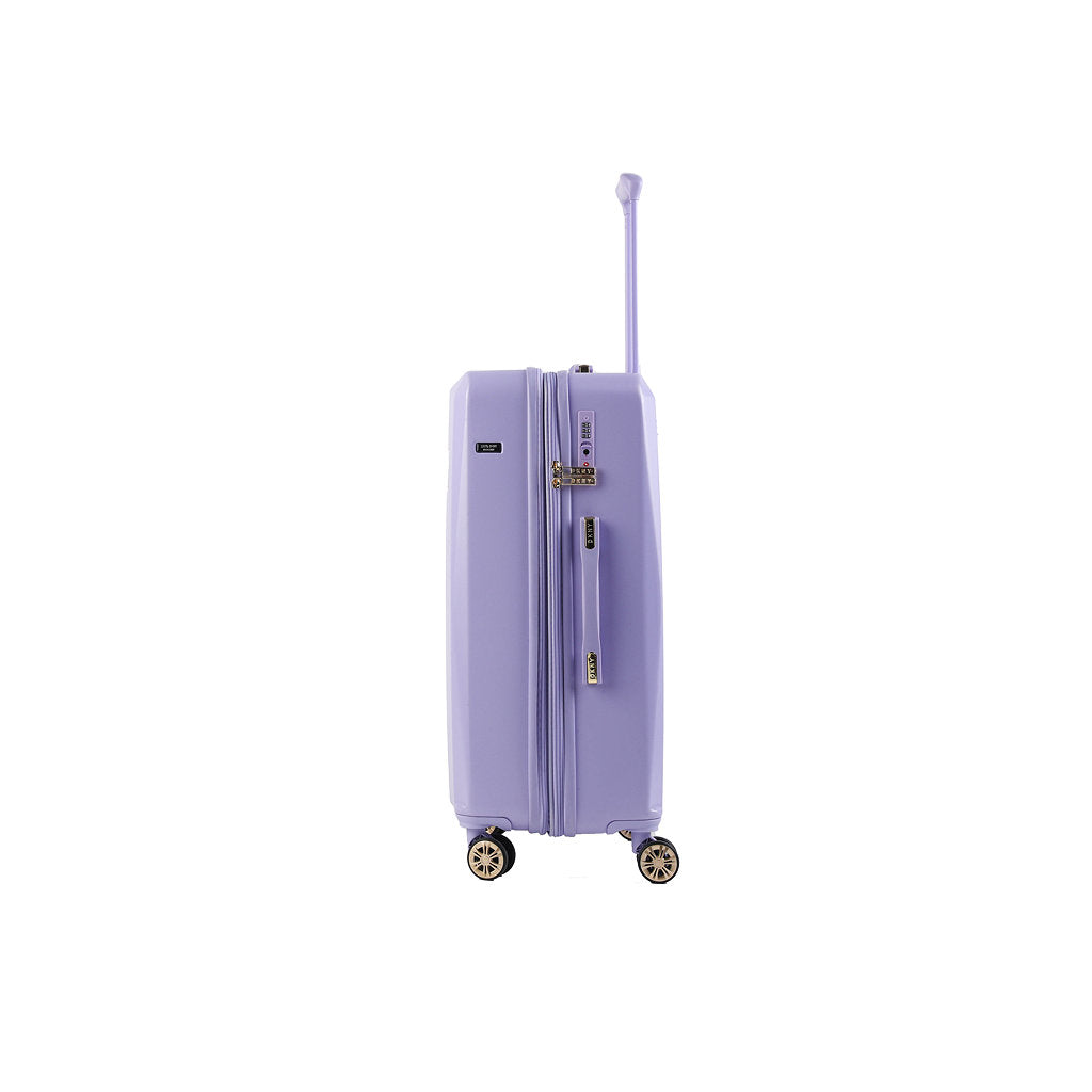 Travel in style with the DKNY Purple Medium Luggage. This sleek and sophisticated suitcase is perfect for your next adventure. With its vibrant purple color, it adds a pop of personality to your travel ensemble. The medium size provides ample space for all your essentials, whether you're going on a weekend getaway or a longer trip. The durable construction ensures that your belongings stay safe and secure throughout your journey. The smooth-rolling wheels and telescopic handle make it easy to maneuver through crowded airports and busy streets. With the DKNY Purple Medium Luggage, you'll be the envy of fellow travelers while staying organized and stylish.