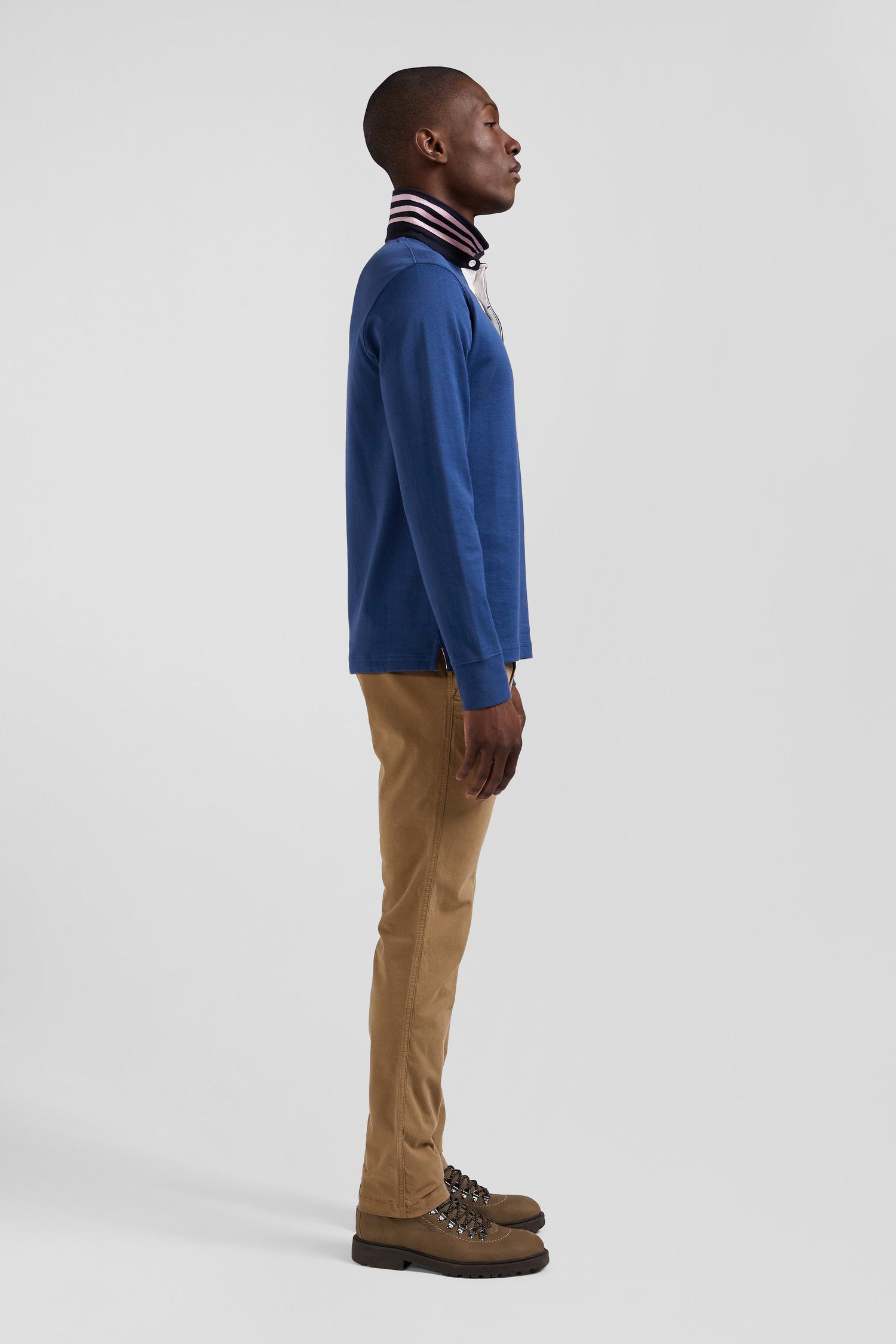Regular Dark Blue Long-Sleeved Pima Cotton Rugby Shirt