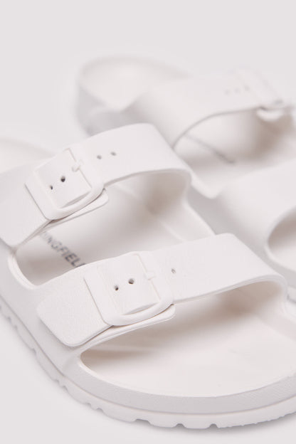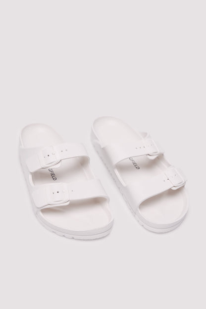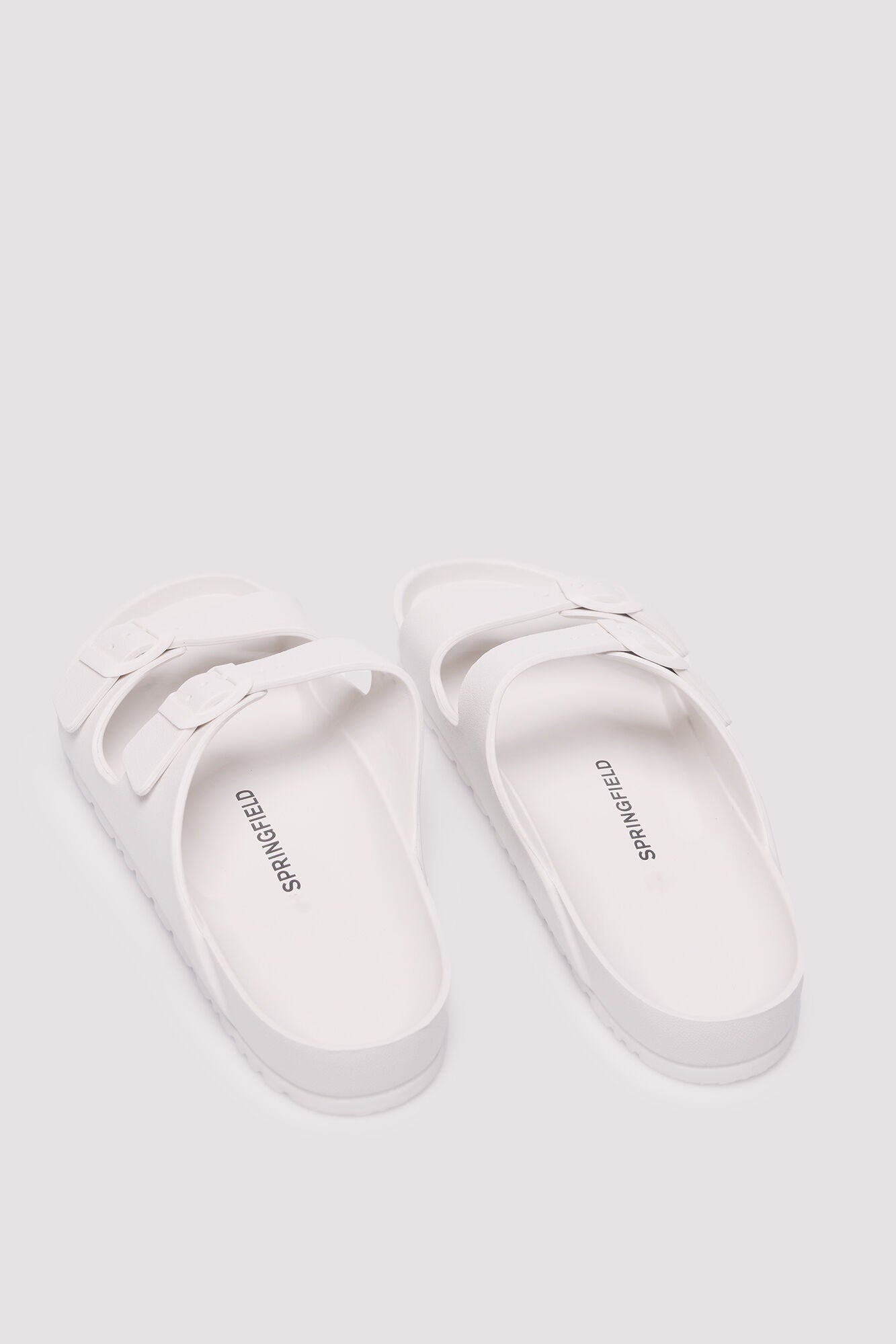 volume sandal made of high quality, single-colour plastic, ultra light and comfortable. Available in three colors, with two straps and adjustable, water-resistant buckles.